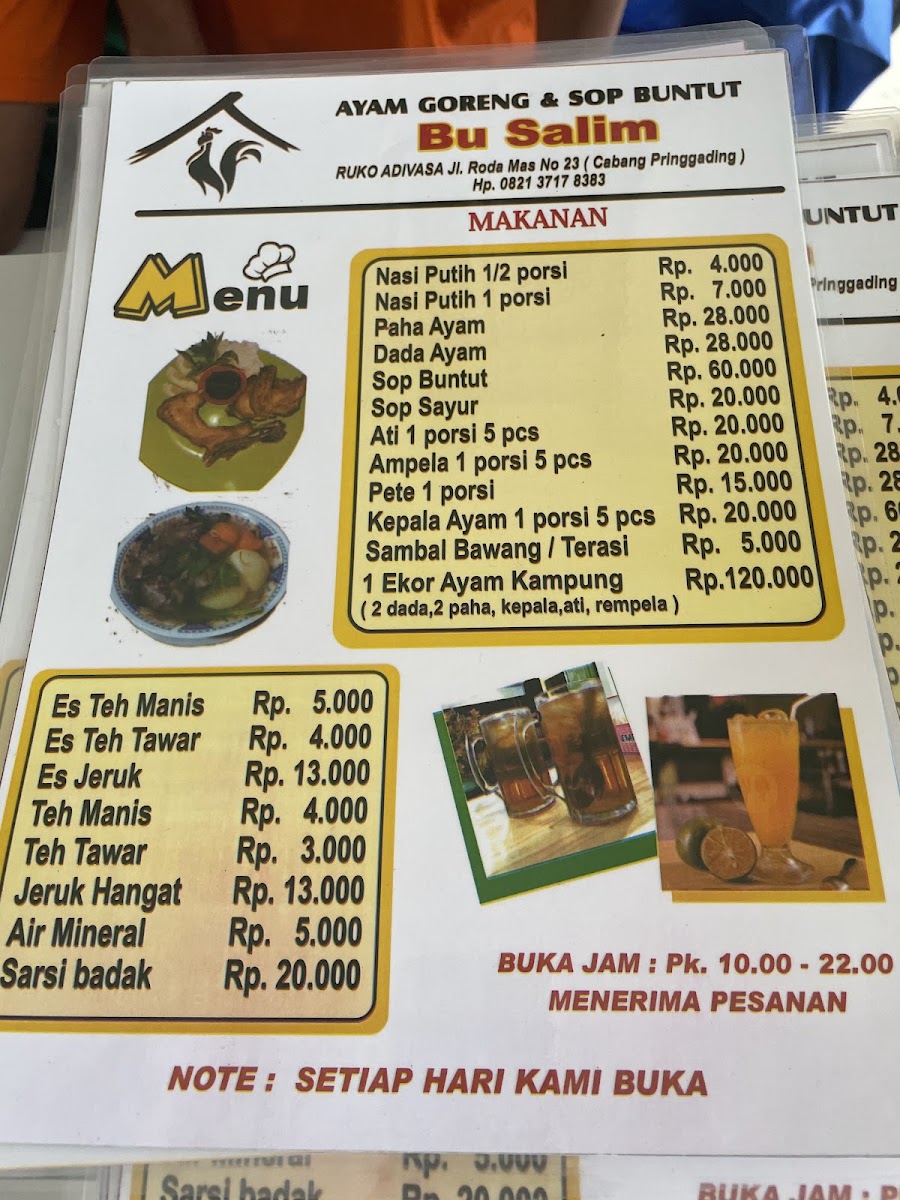 The reviews rave about the tender, well-marinated chicken, served up alongside a hearty oxtail soup that has won the hearts of many. Patrons appreciate the cleanliness, friendly service, and quick meal preparation—all complemented by competitive prices and ample parking. Whether you're dining in or taking out, the experience is sure to be enjoyable. With its inviting atmosphere and standout dishes, Ayam Goreng & SOP Buntut Bu Salim has cemented itself as a must-visit spot for food enthusiasts seeking authentic local cuisine.